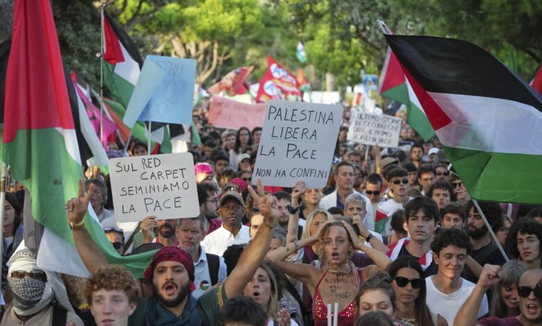 The PLEDGE, Organized by Film Workers For Palestine-a group of film creatives based in Various Countries formed in 2024-Follows a Pro-Palestinian Demonstation At the recent venice interactive film festive That Drew an Estimated 10,000 people. That following a call by a group called canice4Palestine for the festival to condemn the destruction in gaza.